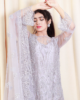 Enrich your collection with our beautiful 3 piece dress that is perfect for party wear , occasions ,Dawats , Family get to gather and weddings. Boat neck line with long net sleeves , long shirt with lining , pearls work , sequence work and cut dana to enhance its elegance that are given with straight silk plain trouser , pearls, sequence work and cut dana work on dupatta to perfectly sync with modernize elegance and look more luxurious!
