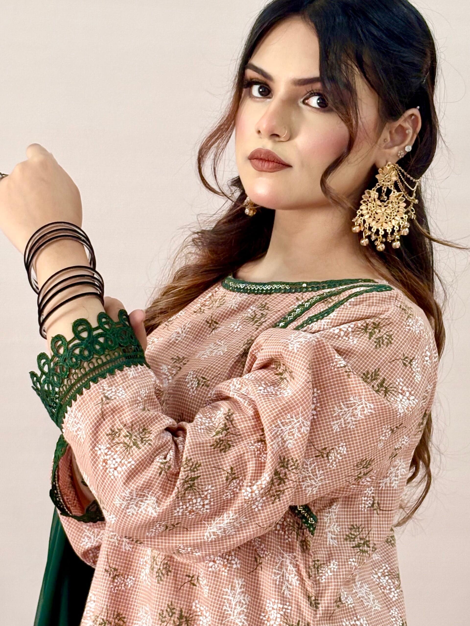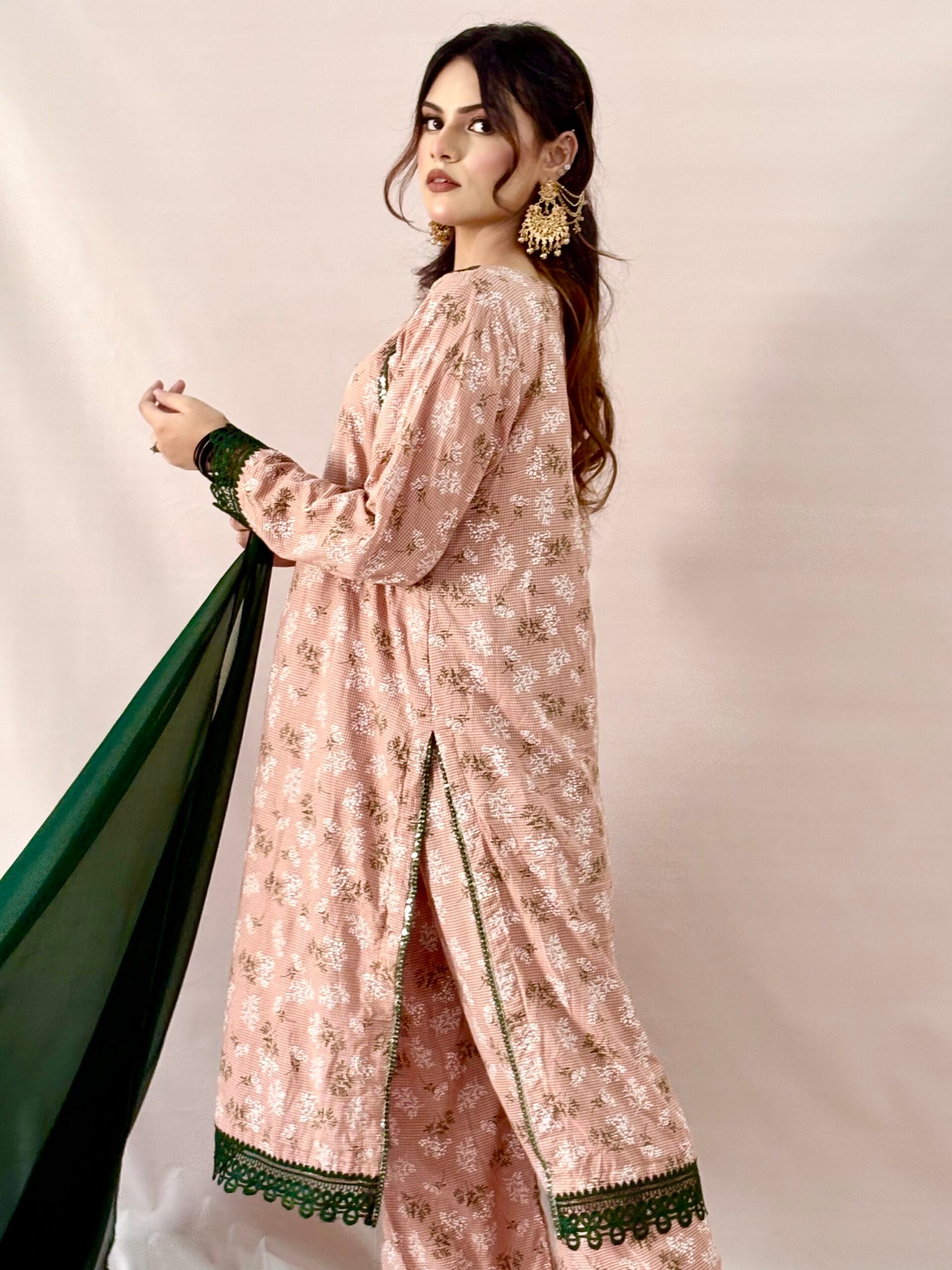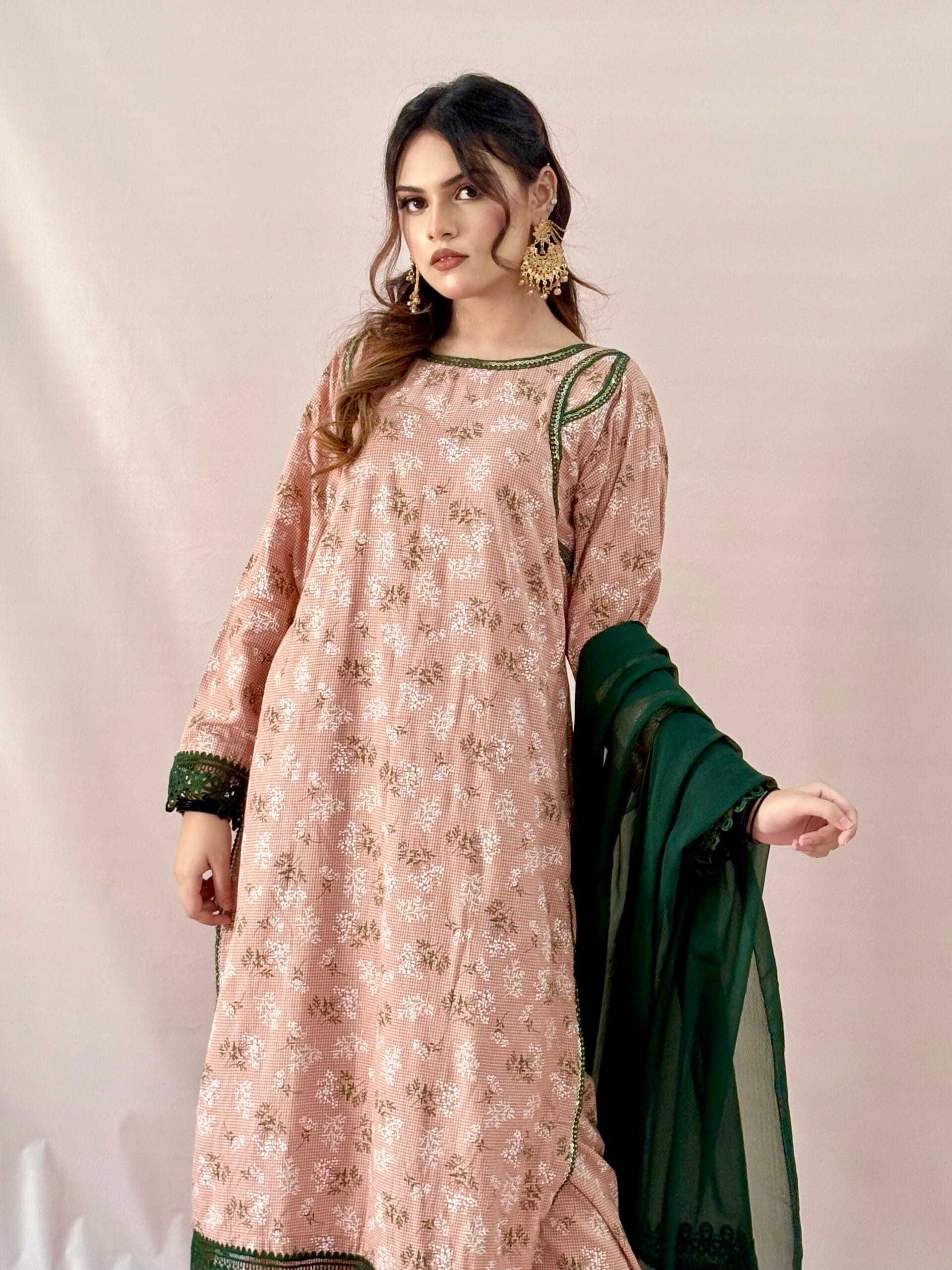 Wrap up yourself in this Eid with our lutf . Made up from soft lawn crafted with breathable fabric for all day comfort. Creative and trendy lace designing on neck line, long sleeves with embroidered lace , straight long shirt with square shape hem worked with beautiful digital print on all over shirt and trouser and with chiffon embroidery lace dupatta to make your Eid more stunning . It is traditional pret wear perfect for Eid, occasions, get-together, party wear and dawats.