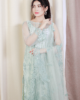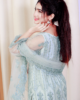 Enrich your collection with our beautiful 3 piece dress that is perfect for party wear , occasions ,Dawats , Family get to gather and weddings. Boat neck line with long net sleeves , long shirt with lining , pearls work , sequence work and cut dana to enhance its elegance that are given with straight silk plain trouser , pearls, sequence work and cut dana work on dupatta to perfectly sync with modernize elegance and look more luxurious!