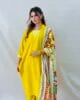 Wrap up yourself in this Eid with our Sanj. Made up from soft Malai crafted with breathable fabric for all day comfort. Colar v neck-line with chicken Kari work, long sleeves worked with chicken Kari, straight long shirt with square shape hem along with straight trouser and with fully digital printed, mirror work silk dupatta to make your Eid more stunning . It is traditional pret wear perfect for Eid, occasions, get-together, party wear and dawats.