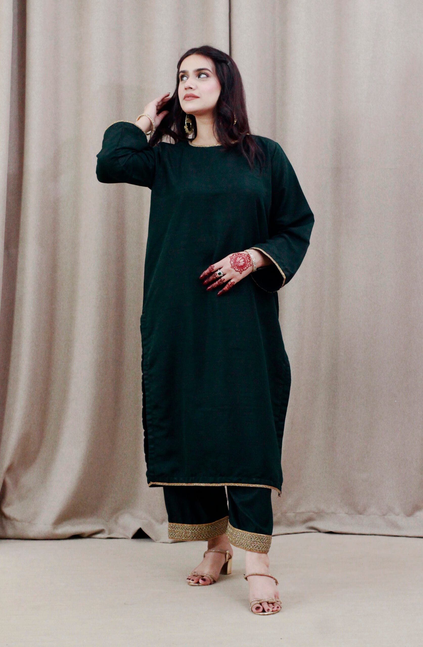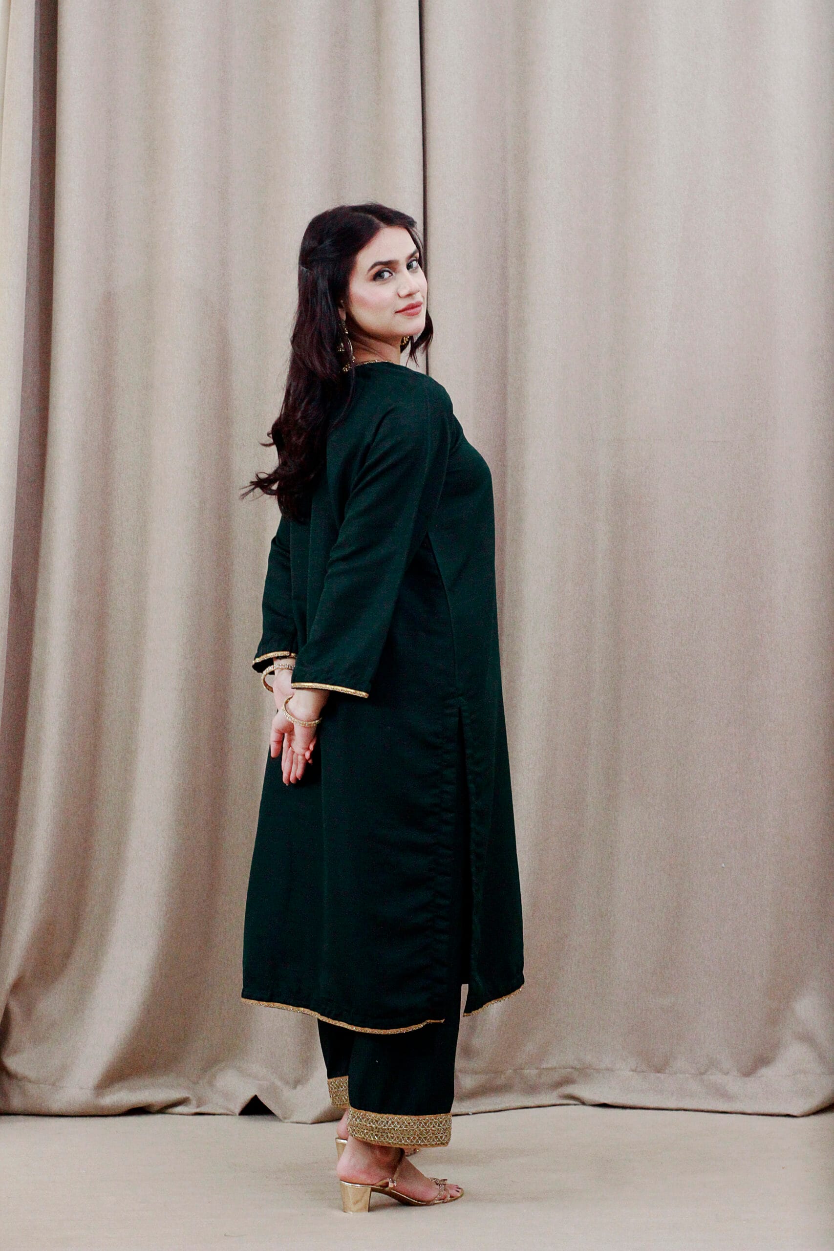 Wrap your self up with our luxury fit. Made up from soft Raw silk crafted with breathable fabric for all day comfort. Boat neck line with fancy lace and long broad sleeves with fancy lace ,straight long shirt with square shape fancy lace hem pair with straight trouser heavy lace work on bottom along with organza fancy sequence lace dupatta. It is traditional pret wear to make your every day and occasional look more special and elegant perfect for weddings, party, dawat, get-together and eid dawats!