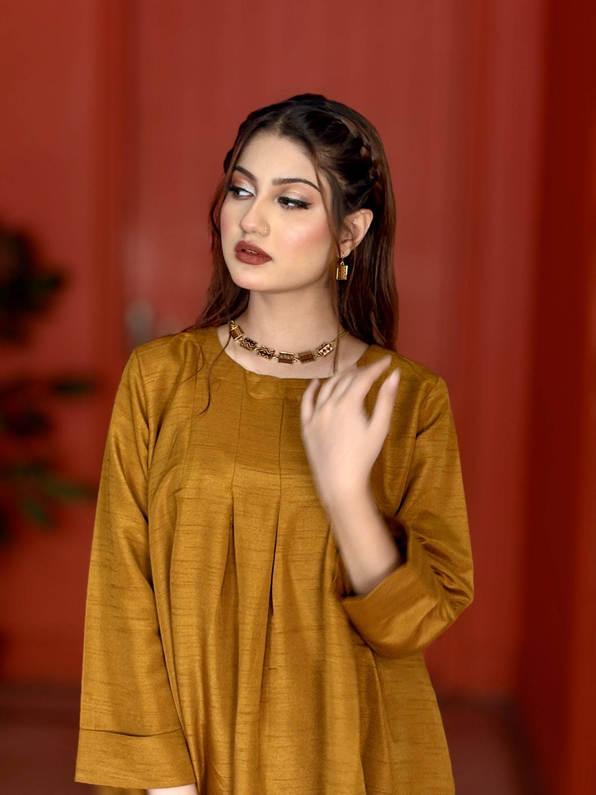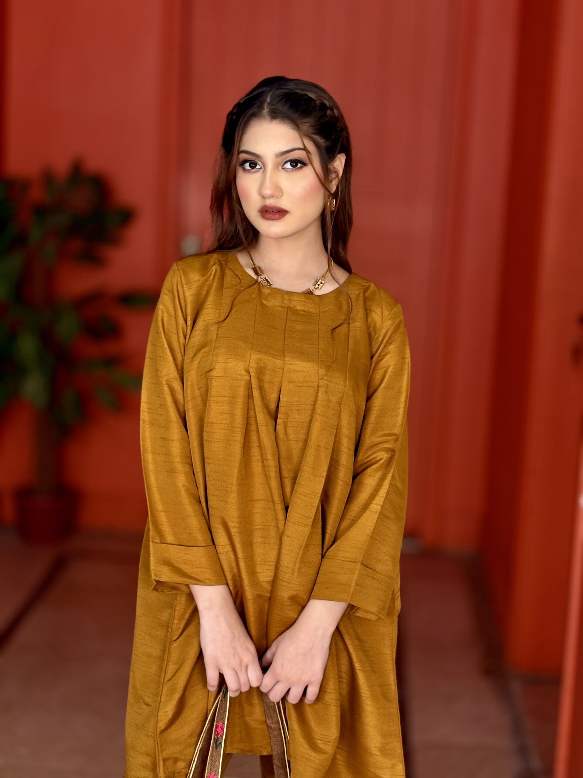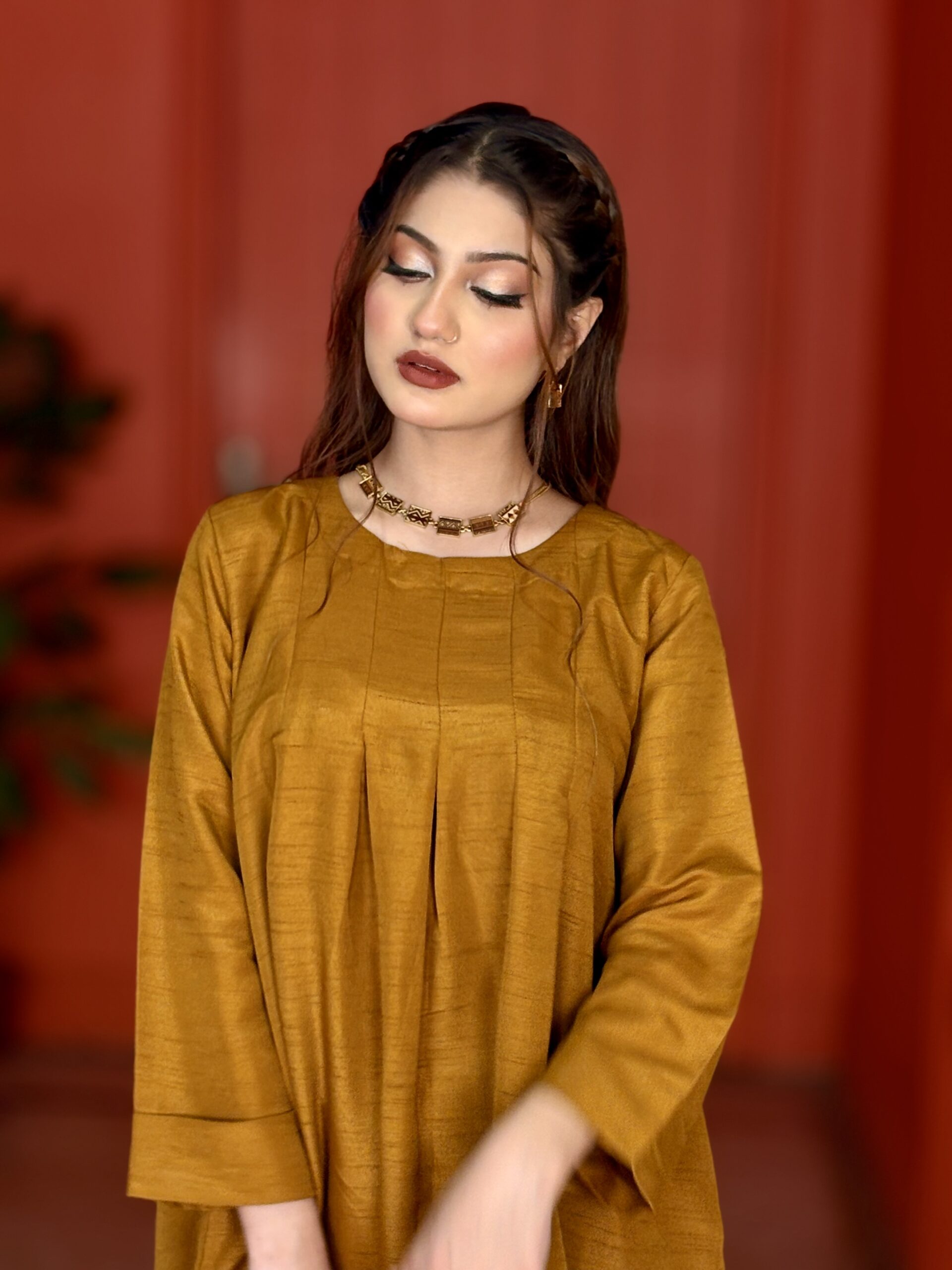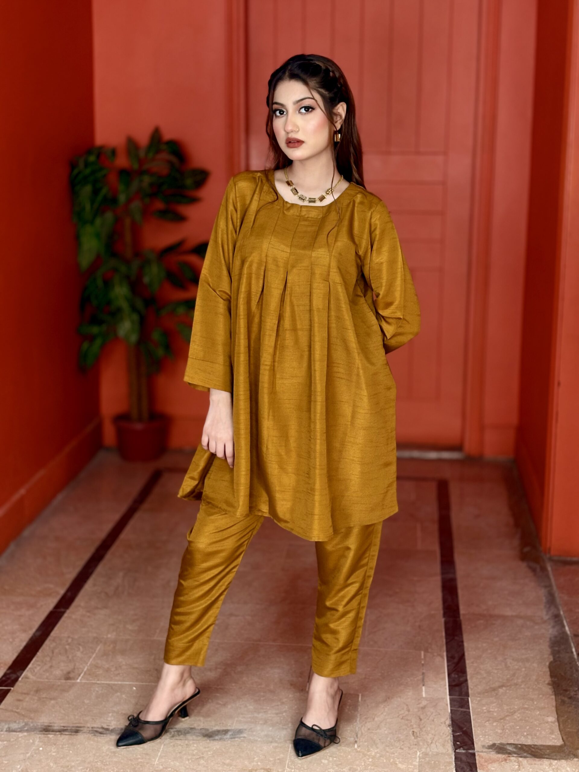 Uplift your casual daily fit with our cord set made for all day comfort. Beautifully create with breathable fabric and intricate with U shape neck line , multiple pleats and short frock style shirt for added easiness to the dress to make more creative, pair with straight trouser. Add ! this is a must-have two piece to your collection today!